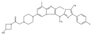 英文同义词: GLPG-1690;2-((2-ethyl-6-(4-(2-(3-hydroxyazetidin-1-yl)-2-oxoethyl)piperazin-1-yl)-8-methylimidazo[1,2-a]pyridin-3-yl)(methyl)amino)-4-(4-fluorophenyl)thiazole-5-carbonitrile;5-Thiazolecarbonitrile, 2-[[2-ethyl-6-[4-[2-(3-hydroxy-1-azetidinyl)-2-oxoethyl]-1-piperazinyl]-8-methylimidazo[1,2-a]pyridin-3-yl]methylamino]-4-(4-fluorophenyl)-