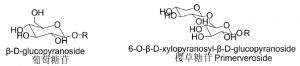 苯甲醇樱草糖苷、苯甲醇葡萄糖苷、2-苯乙醇樱草糖苷、2-苯乙醇葡萄糖苷、芳樟醇樱草糖苷、芳樟醇葡萄糖苷、香叶醇樱草糖苷、香叶醇葡萄糖苷、橙花醇樱草糖苷、橙花醇葡萄糖苷、橙花叔醇樱草糖苷、橙花叔葡萄糖苷