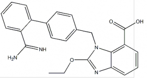 | 英文名: | 1-[[2′-(Aminoiminomethyl)[1,1′-biphenyl]-4-yl]methyl]-2-ethoxy-1H-benzimidazole-7-carboxylic Acid |