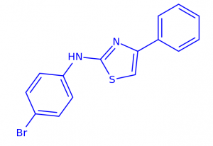 Reaxys ID: 224464 Chemical Names: 4-bromo-phenyl-(4-phenyl-thiazol-2-yl)-amine, 2-(4′-bromophenyl)-amino-4-phenylthiazole, N-(4-bromophenyl)-4-phenylthiazol-2-amine, (RCGD)-423, RCGD423, (4-bromo-phenyl)-(4-phenyl-thiazol-2-yl)-amine, (4-Brom-phenyl)-(4-phenyl-thiazol-2-yl)-amin CAS Registry Number(s): 108237-91-8 Substance type: heterocyclic Molecular Formula: C15H11BrN2S Linear Structure Formula: C15H11BrN2S Molecular Weight: 331.236 No of references: 12 InChIKey: OUFYYVAASPLOAA-UHFFFAOYSA-N