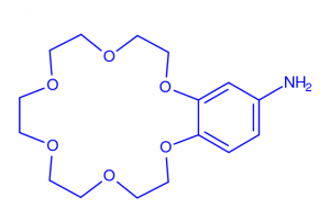 Reaxys ID: 5296463 Chemical Names: 4-aminobenzo-18-crown-6, 4′-aminobenzo-18-crown-6, 2,3,5,6,8,9,11,12,14,15-decahydrobenzo[b][1,4,7,10,13,16]hexaoxacyclooctadecin-18-amine, 4’-aminobenzo-18-crown-6, 4′-aminobenzo-18-crown-6, 4′-aminobenzo 18-crown-6 ether, 4′-amino benzo-[18-crown-6] CAS Registry Number(s): 68941-06-0 Substance type: heterocyclic Molecular Formula: C16H25NO6 Linear Structure Formula: (OCH2CH2)5O(C6H3)NH2 Molecular Weight: 327.378 No of references: 84 InChIKey: PZXYILUXRGTFGD-UHFFFAOYSA-N