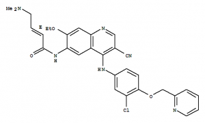 中文别名:(2E)-N-[4-[[3-氯-4-[(吡啶-2-基)甲氧基]苯基]氨基]-3-氰基-7-乙氧基喹啉-6-基]-4-(二甲基氨基)丁-2-烯酰胺英文名称:2-Butenamide,N-[4-[[3-chloro-4-(2-pyridinylmethoxy)phenyl]amino]-3-cyano-7-ethoxy-6-quinolinyl]-4-(dimethylamino)-,(2E)-; (E)-N-[4-[3-Chloro-4-[(2-pyridinyl)methoxy]anilino]-3-cyano-7-ethoxy-6-quinolinyl]-4-(dimethylamino)-2-butenamide;(E)-N-[4-[[3-C…