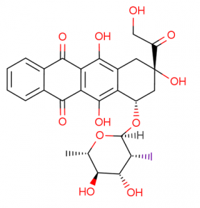 Reaxys ID: 5788242 Chemical Names: Annamycin, (7S,9S)-4-demethoxy-7-O-(2,6-dideoyxy-2-iodo-α-L-mannopyranosyl)adriamycinone, (7S,9S)-4-demethoxy-7-O-(2,6-dideoxy-2-iodo-α-L-mannopyranosyl)adriamycinone, annamycin CAS Registry Number(s): 92689-49-1 Substance type: heterocyclic Molecular Formula: C26H25IO11 Linear Structure Formula: C26H25IO11 Molecular Weight: 640.382 No of references: 10 InChIKey: CIDNKDMVSINJCG-GKXONYSUSA-N