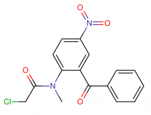 Reaxys ID: 2772273 Chemical Names: 5-Nitro-2-methylchloracetamidobenzophenon CAS Registry Number(s): 50840-35-2 Substance type: isocyclic Molecular Formula: C16H13ClN2O4 Linear Structure Formula: C16H13ClN2O4 Molecular Weight: 332.743 No of references: 3 InChIKey: ROZXYKZBRMVUPF-UHFFFAOYSA-N