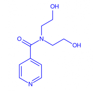 Reaxys ID: 171872 Chemical Names: BIN, isonicotinic acid-[bis-(2-hydroxy-ethyl)-amide], Isonicotinsaeure-[bis-(2-hydroxy-aethyl)-amid], N,N-bis(2-hydroxyethyl)isonicotinamide CAS Registry Number(s): 70892-82-9 Substance type: heterocyclic Molecular Formula: C10H14N2O3 Linear Structure Formula: C10H14N2O3 Molecular Weight: 210.233 No of references: 9 InChIKey: MTPZSDPCKPPQCT-UHFFFAOYSA-N