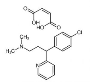 中文别名:扑尔敏;氯苯吡丙胺;氯苯那敏;氯非那敏;氯屈米通;马来那敏;马来酸氯苯吡胺;马来酸氯苯那敏;曲吡那敏;氯屈米通;氯苯吡胺